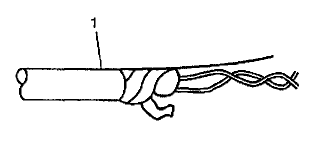 Twisted/shielded cable is used in order to protect wiring from electrical noise. Two-conductor cable of this construction is used between the radio and the Delco-Bose(R) speaker/amplifier units and other applications where low level, sensitive signals must be carried. Follow the instructions below in order to repair the twisted/shielded cable.1. Remove the outer jacket (1). Use care not to cut into the drain wire of the mylar tape.
