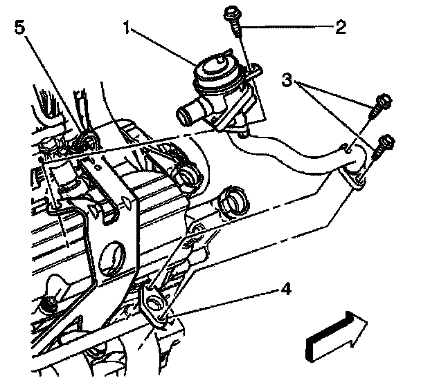 4. Remove the mounting bolt that secures the combination valve to the map sensor bracket (2).