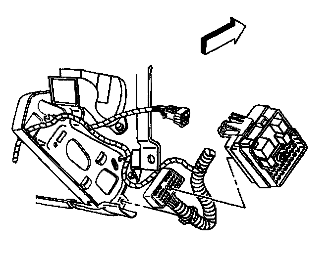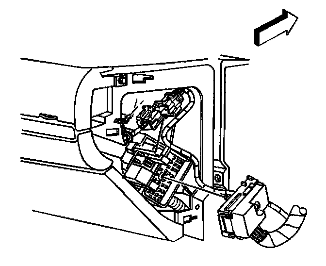 6. Disengage the junction block tabs from the passenger knee bolster. Pull the junction block away from the IP.
