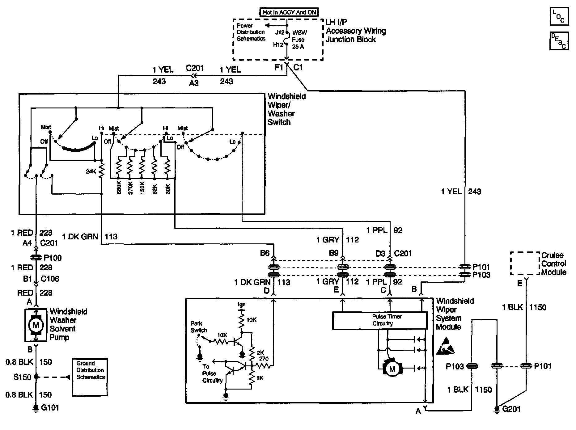 Wiper/Washer System (Pulse) Schematics: