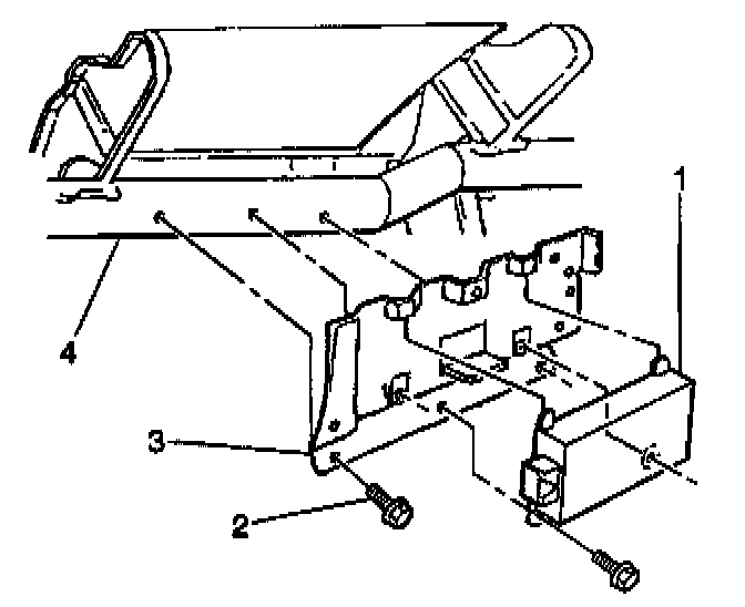 4. Install the theft deterrent module bracket to the cross car beam (4).