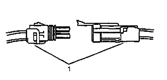 ^ Insert the Weather Pack(R) Terminal Removal tool into the front (mating end) of the connector cavity until it rests on the cavity shoulder (1).