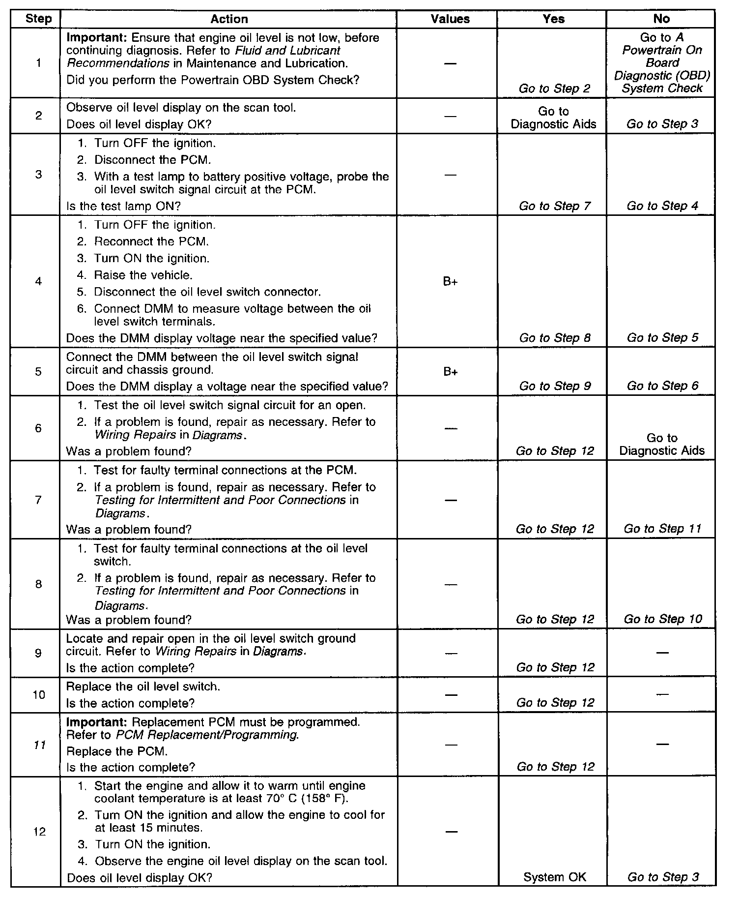 Engine Oil Level Sensor/Switch Diagnosis