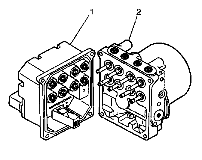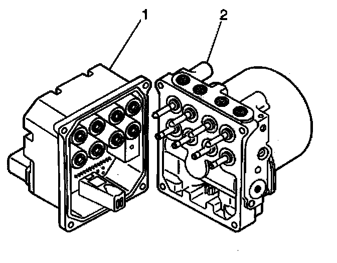 8. Remove the EBCM (1) from the BPMV (2) by gently pulling apart until separated.