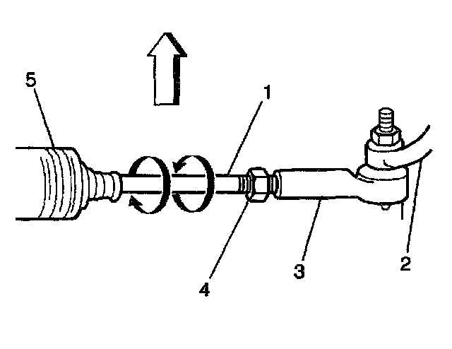 6. Check the toe alignment. Readjust the inner tie rod (3), if necessary. Refer to Wheel Alignment Specifications.