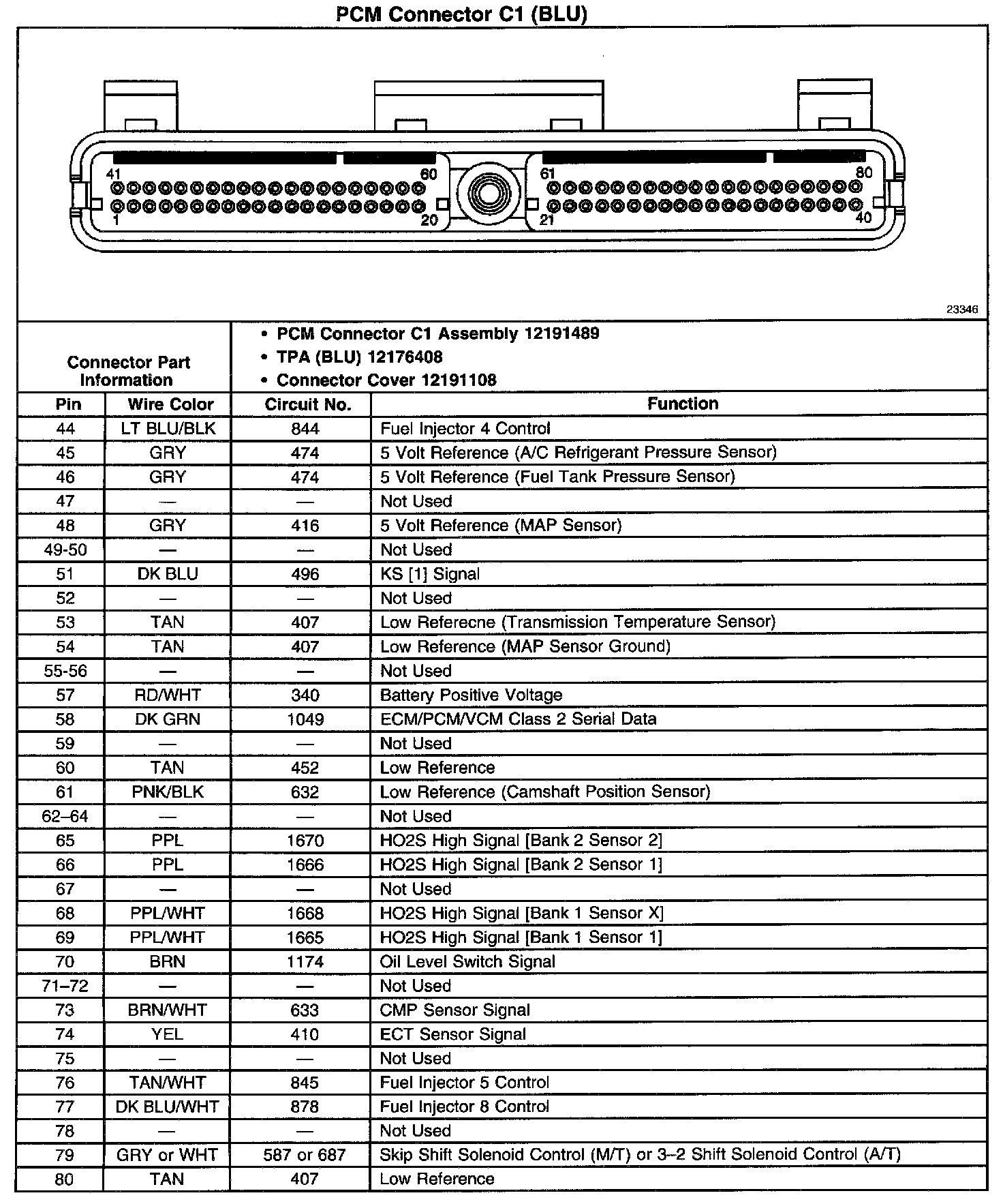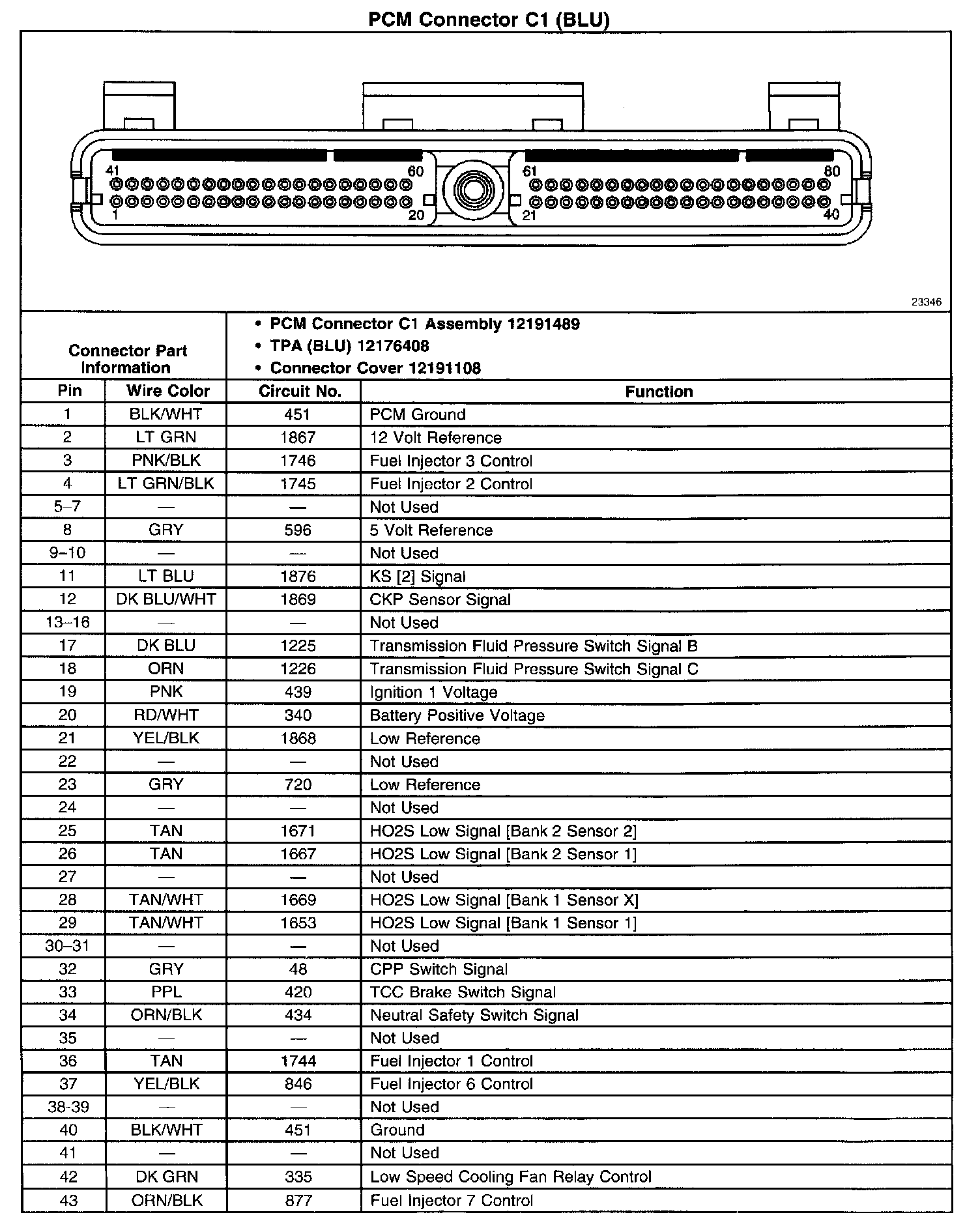 PCM Connector C1 (BLU) (Part 2 Of 2):