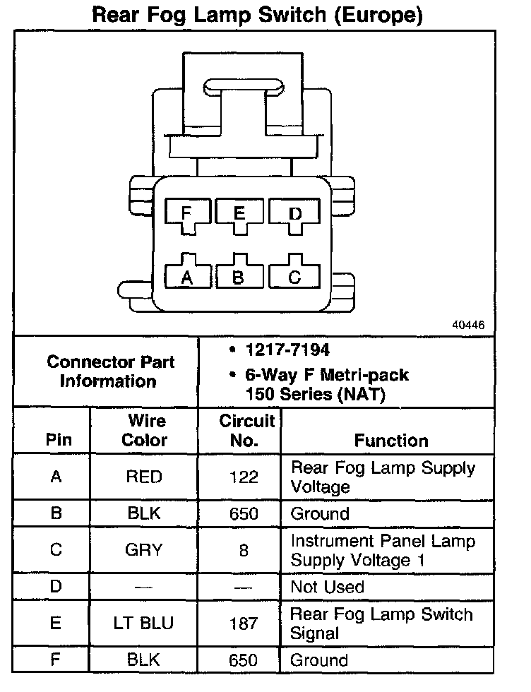 Rear Fog Lamp Switch (Europe):