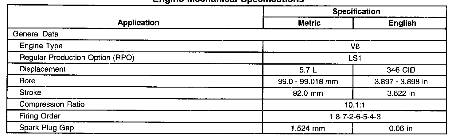 General Engine Data/Specifications