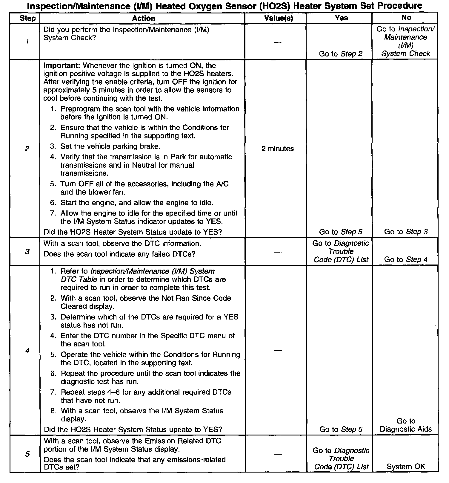 I/M HO2S Heater System Set Procedure
