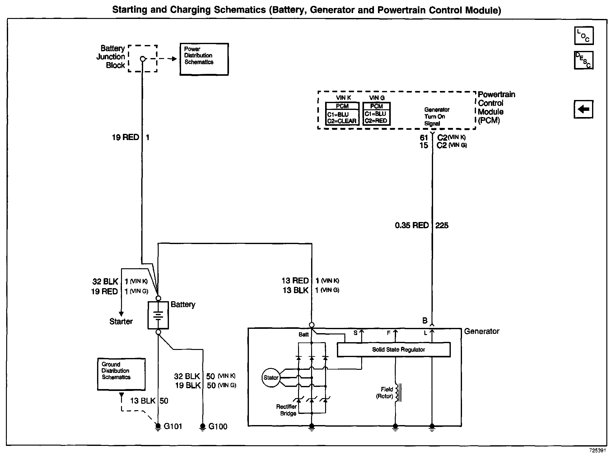 Starting And Charging Schematics: Battery, Generator And Powertrain Control Module: