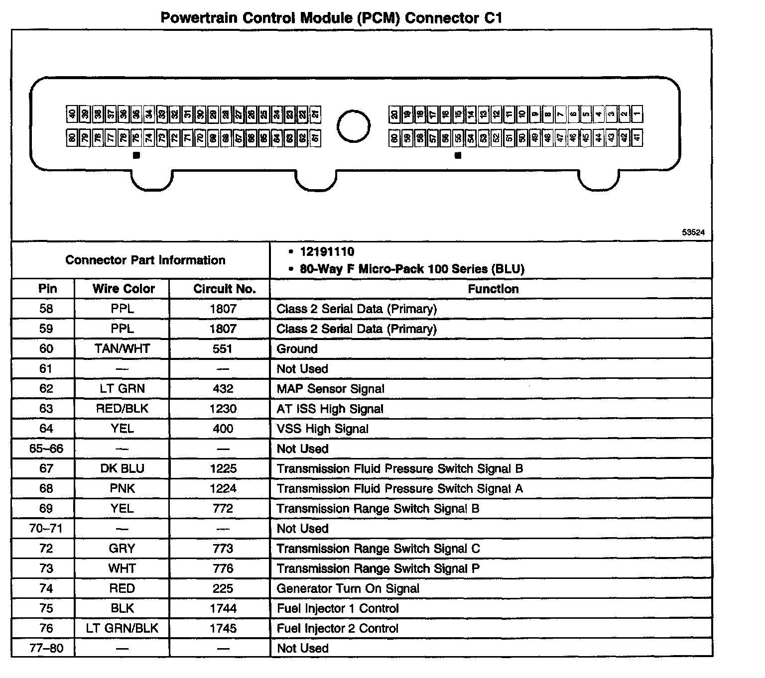 Powertrain Control Module (PCM) Connector C1 (Part 2 Of 2):