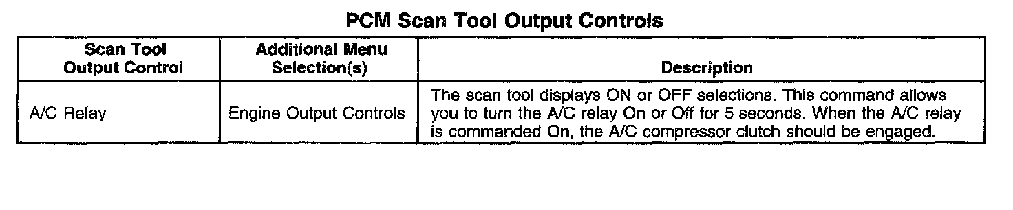 Scan Tool Output Controls - Powertrain Control Module (PCM)