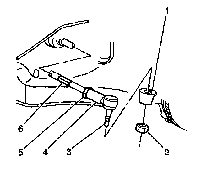 1. Ensure that the steering wheel is set in a straight ahead position.2. Loosen the tie rod jam nut (5).