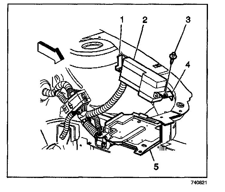 4. Remove the push-in retainer (3) from the electrical center.