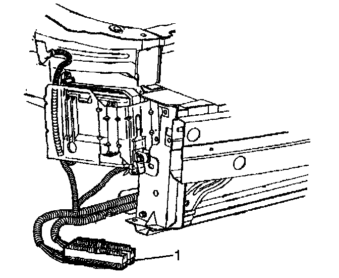 8. Slide the PCM assembly (1) and protective cover (if equipped) from the PCM bracket (2).