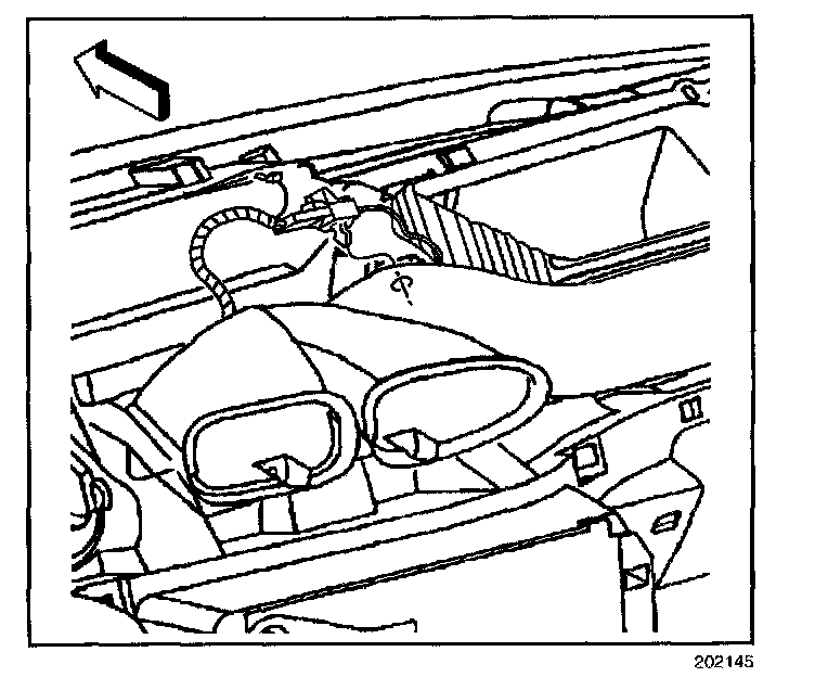 1. Install the inflatable restraint IP module (1) to the instrument panel.