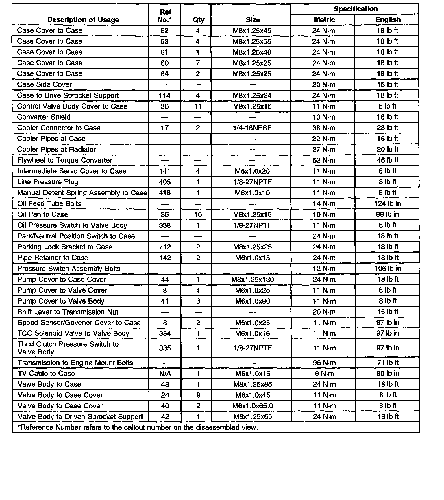 Fastener Tightening Specifications