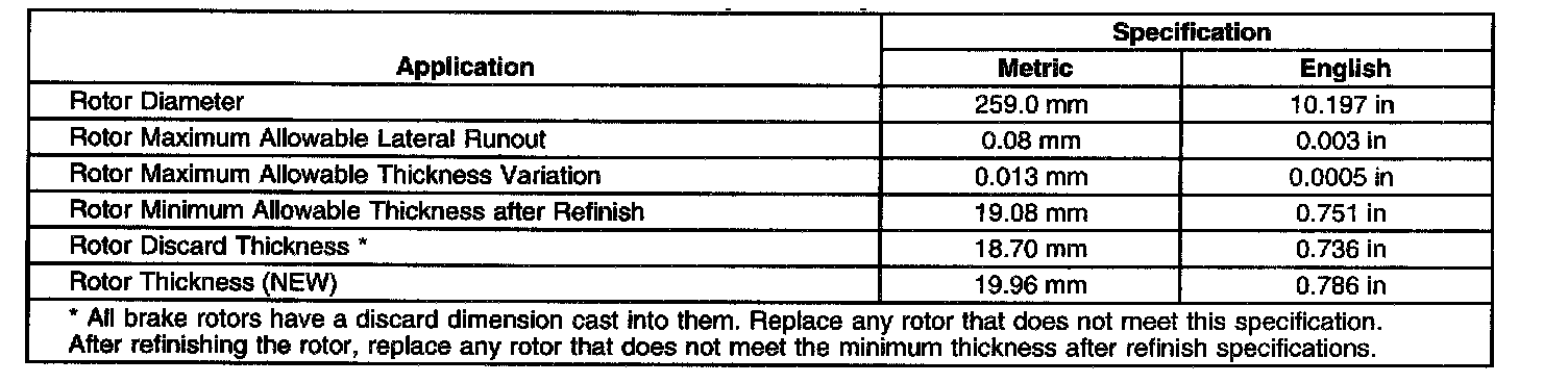 Disc Brake Component Specifications