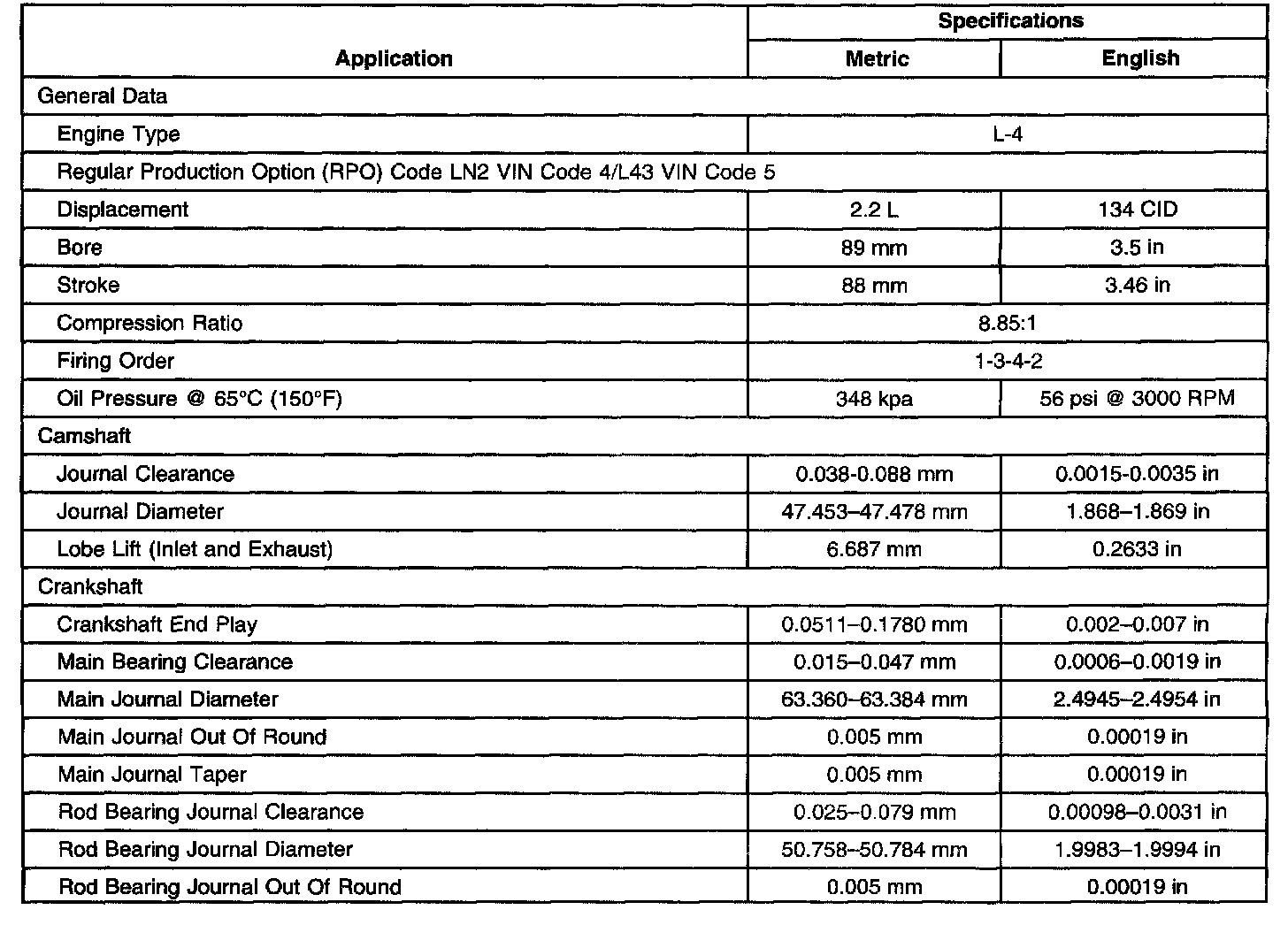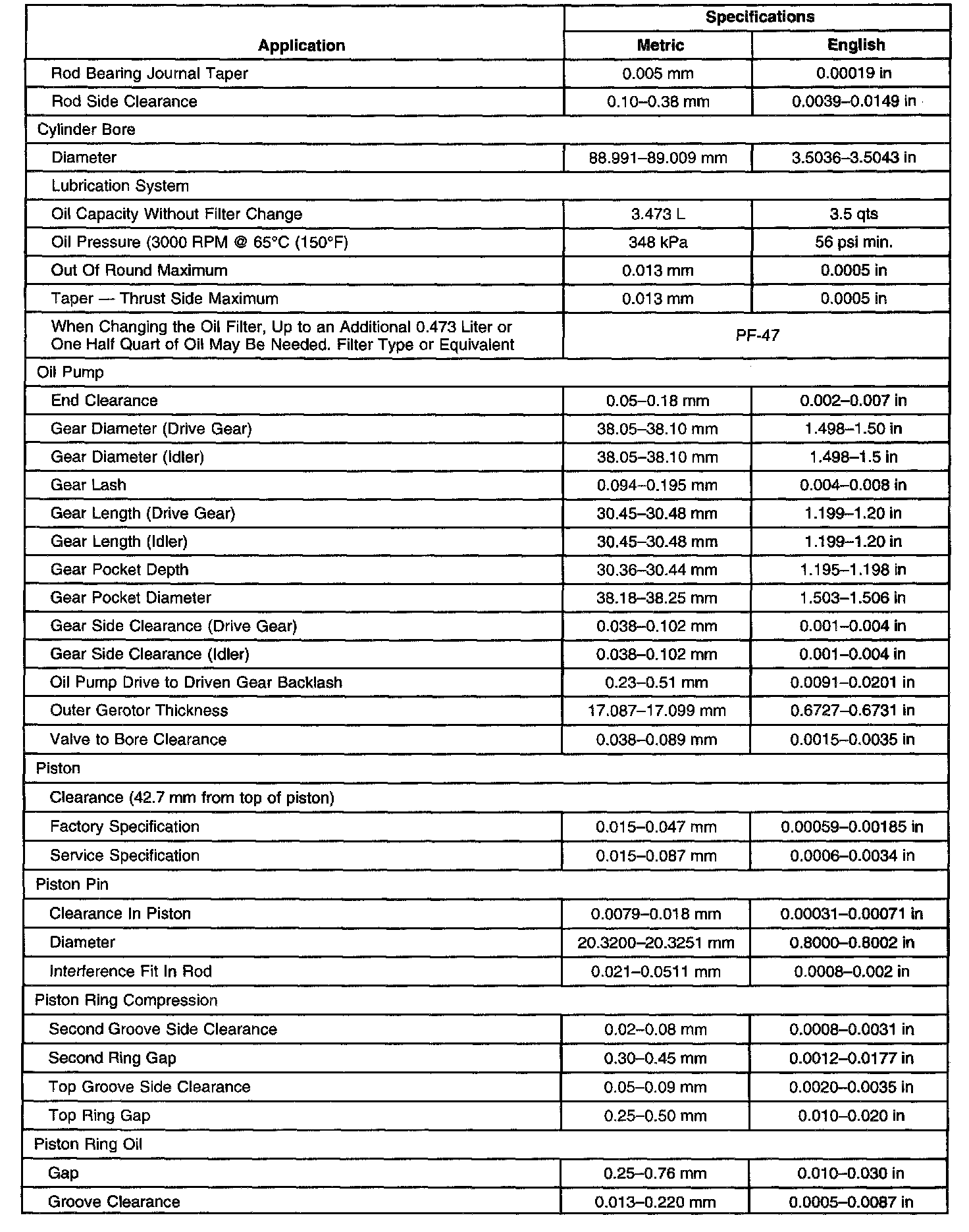Engine Mechanical Specifications