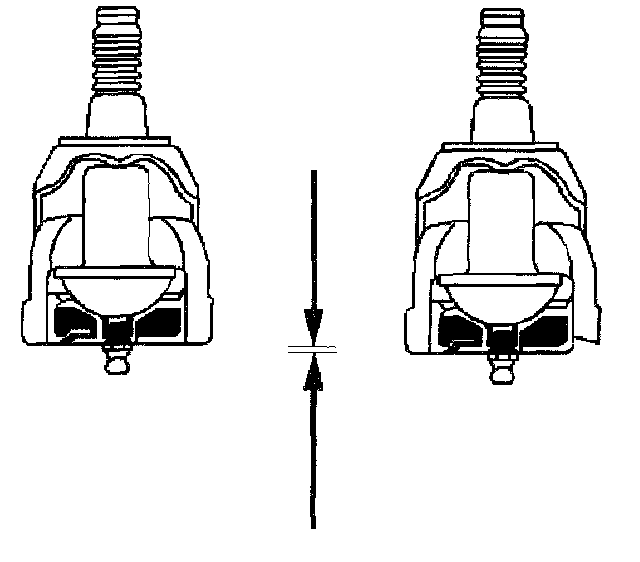 6.1. Inspect by sight the lower ball joint for wear. The position of the housing into which the grease fitting is threaded indicates wear. This round housing projects 1.27 mm (0.050 inch) beyond the surface of the lower ball joint cover on a new ball joint. Under normal wear, the surface of the lower ball joint housing retreats inward very slowly.