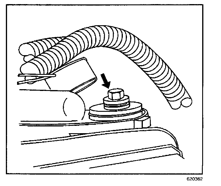 8. Remove the positive battery cable to starter solenoid nut.