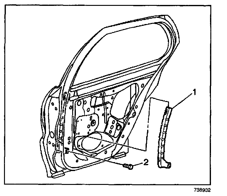 5. Lift up the window and install the window regulator. Refer to Window Regulator Replacement - Rear Door (Power Regulator) or Window Regulator Replacement - Rear Door (Manual Regulator).