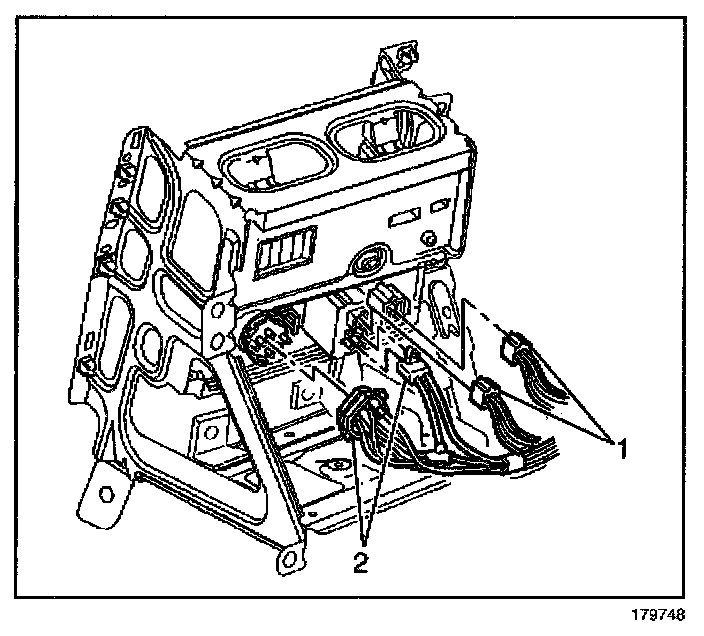 7. Disconnect the electrical connectors (1) from the HVAC control module.