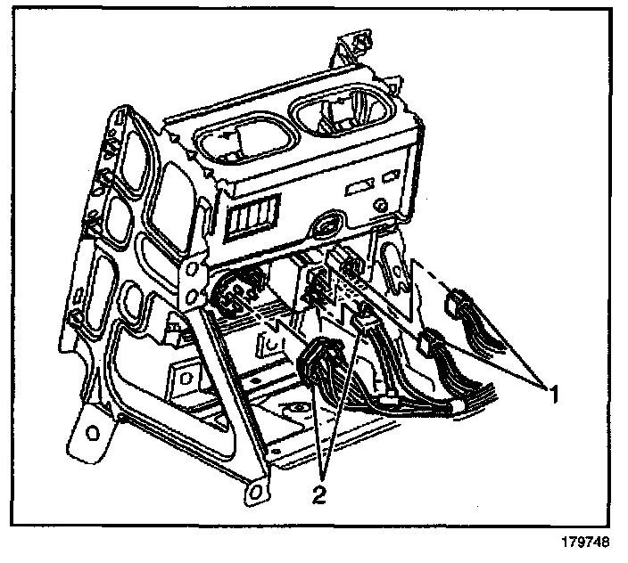 8. Disconnect the vacuum harness connectors (2) from the HVAC control module.