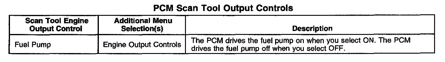 Scan Tool Output Controls - Powertrain Control Module (PCM)