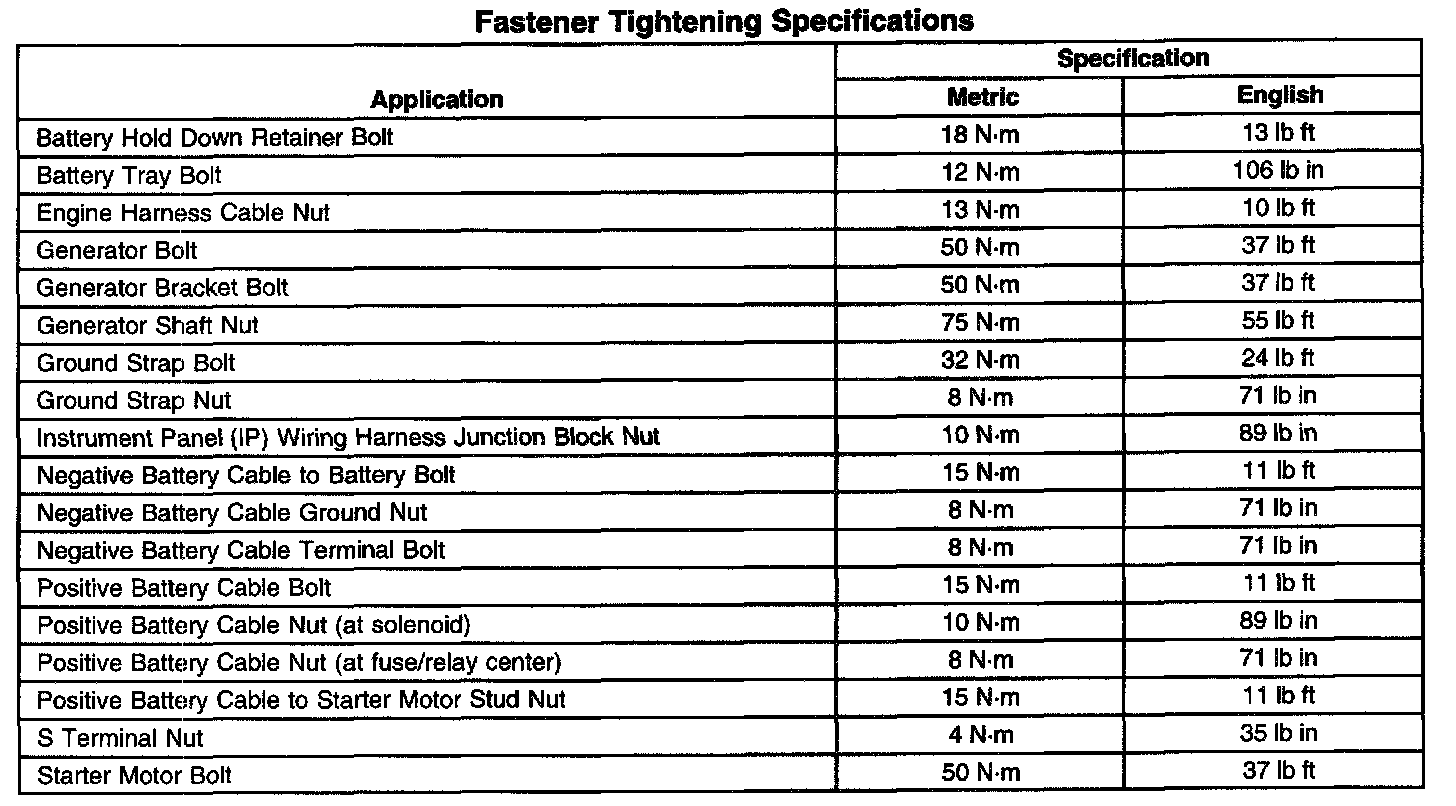 Fastener Tightening Specifications: