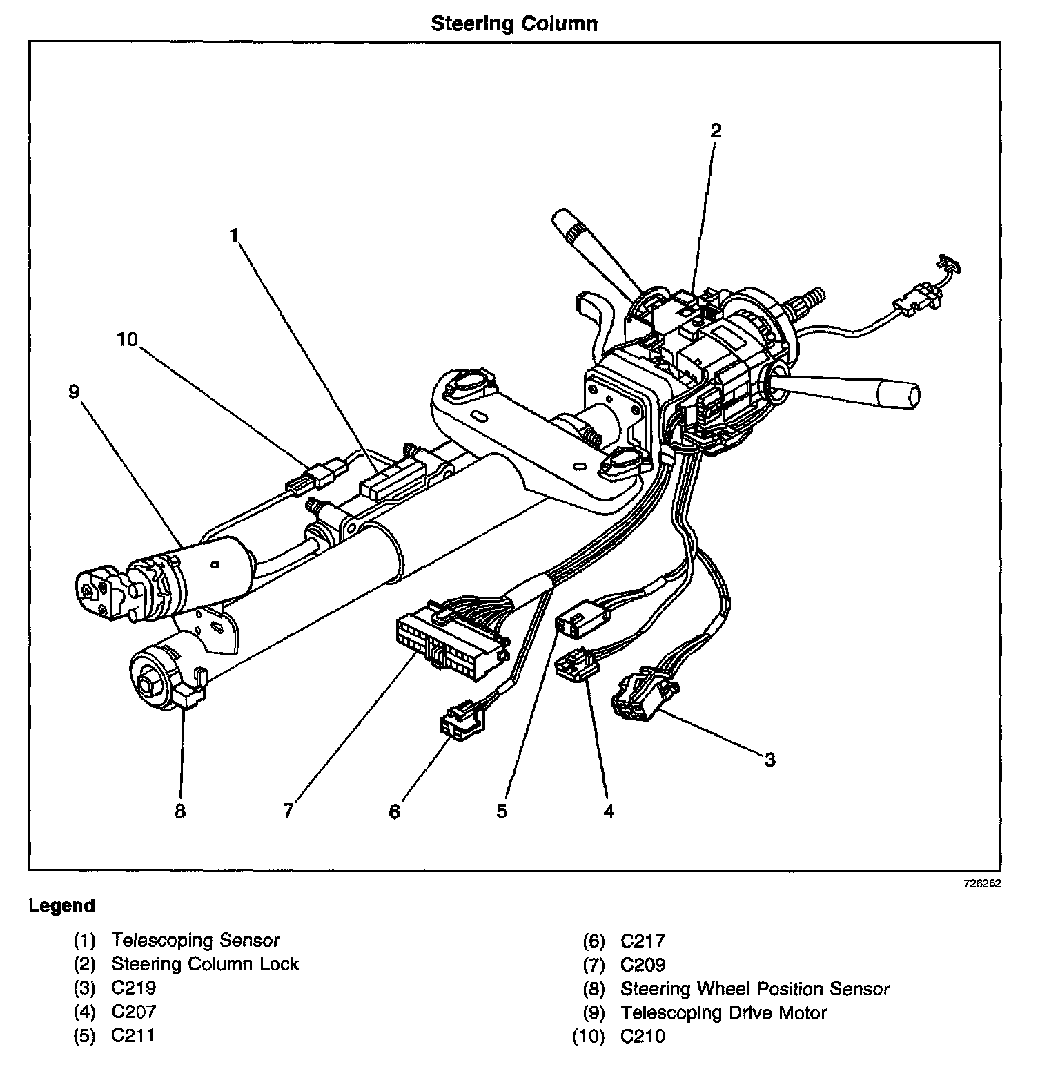 RH side of the steering column, inside steering column shroud