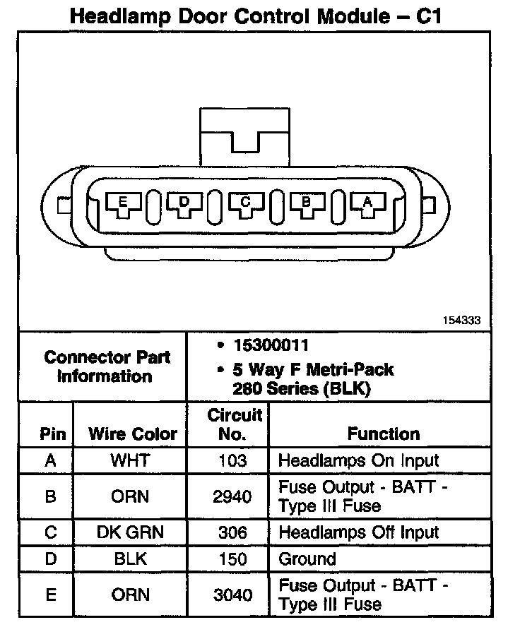 Headlamp Door Control Module - C1: