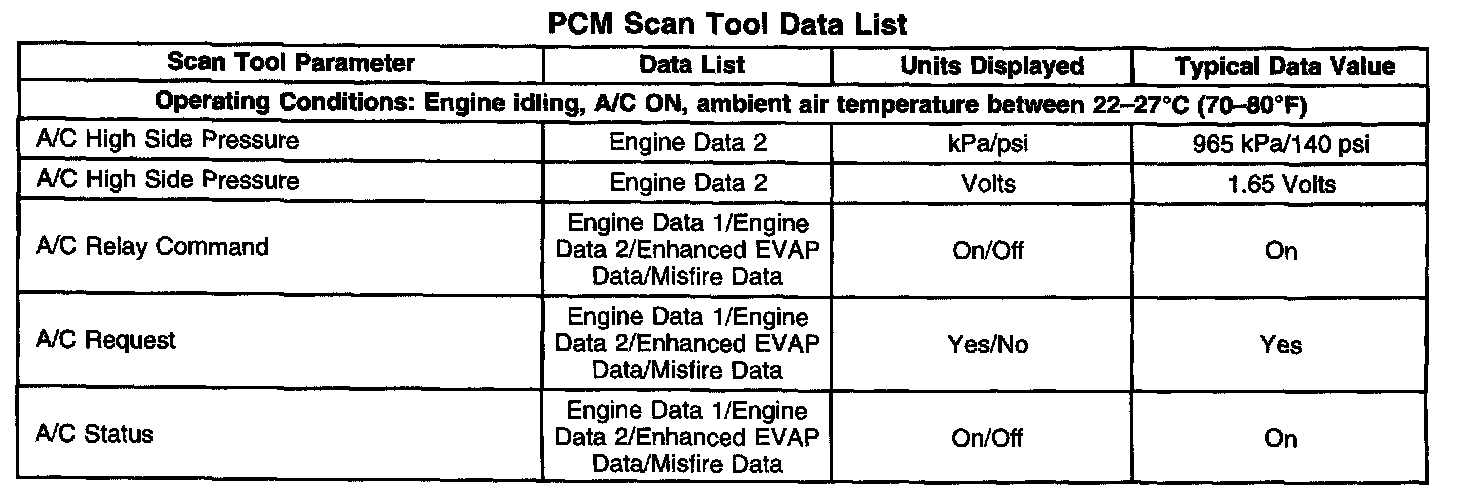 Scan Tool Data List - Powertrain Control Module (PCM)