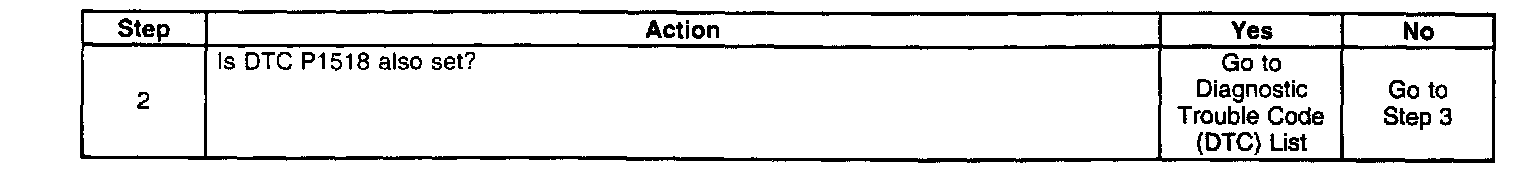 The text "DTC P1515" has been deleted in step 2. Step 2 of this diagnostic table should read as shown.
