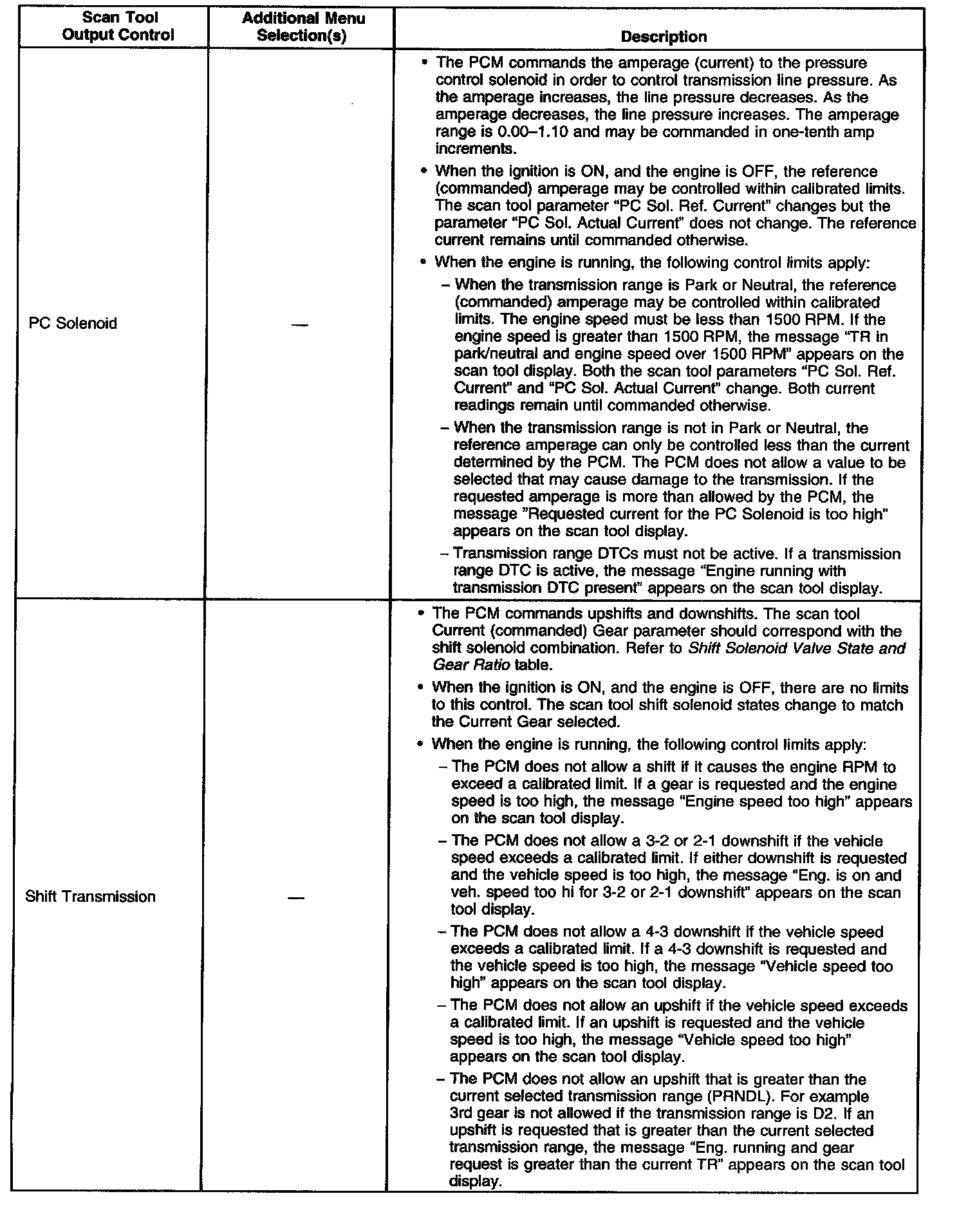 Scan Tool Output Controls
