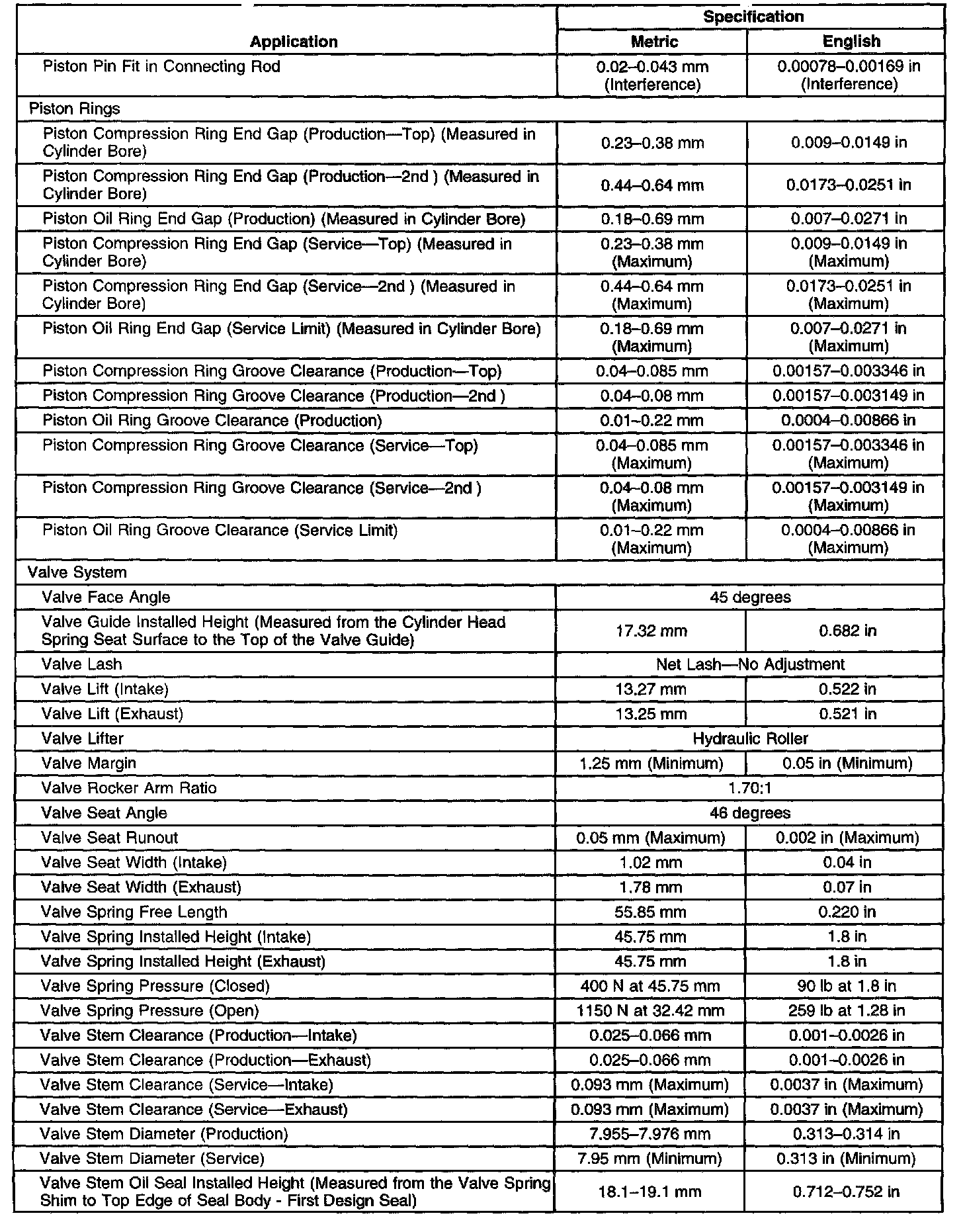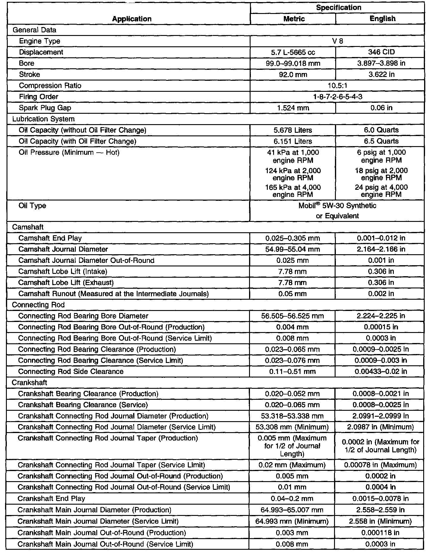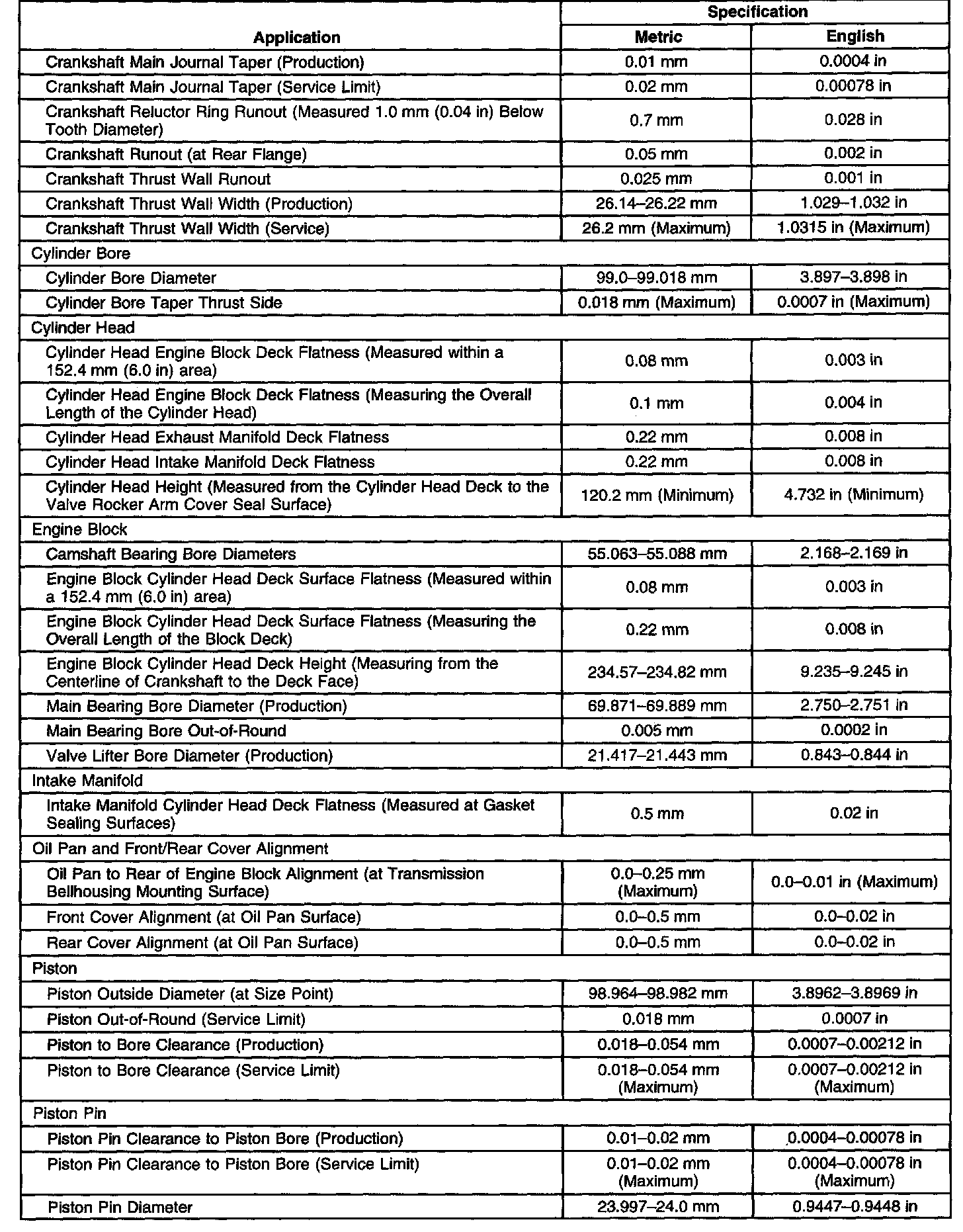 Engine Mechanical Specifications-Unit Repair