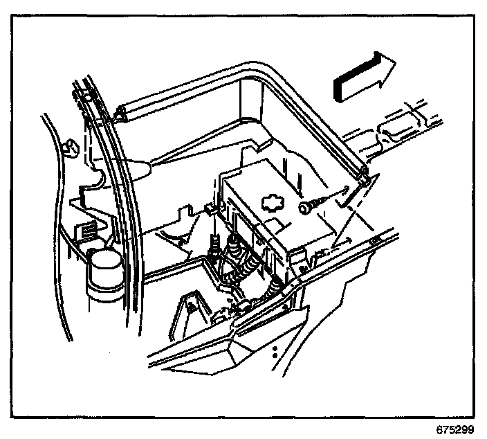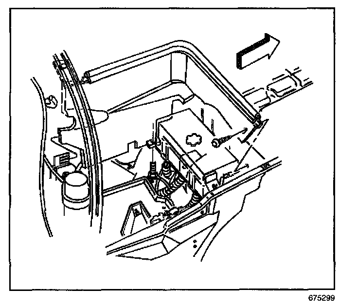 REMOVAL PROCEDURE1. Remove the push-in retainer attaching the air inlet screen and battery heat shield to the plenum panel.