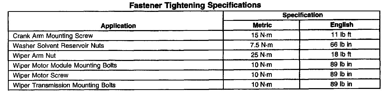 Wiper and Washer Systems: Specifications