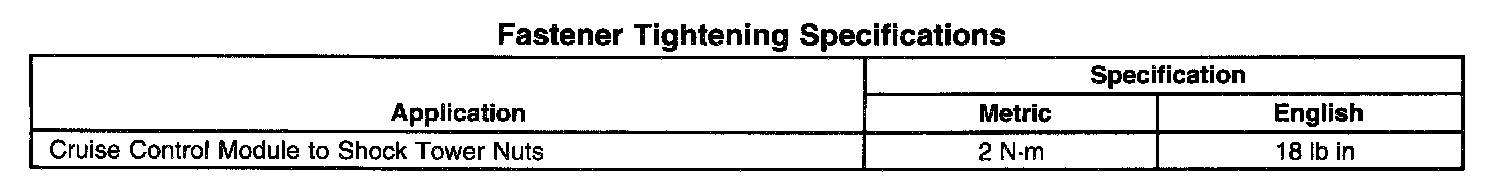 Fastener Tightening Specifications: