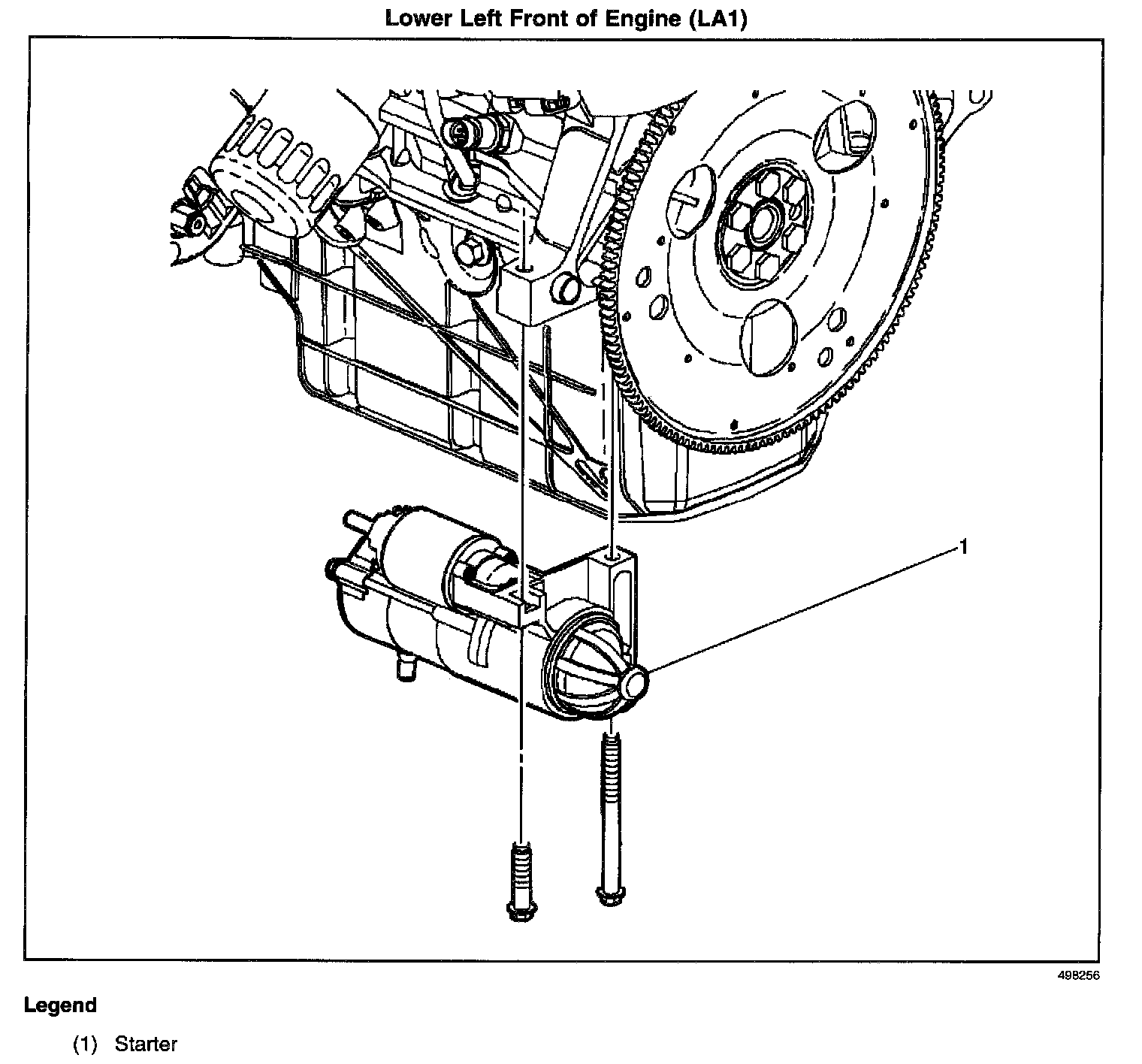 Lower left front of the engine