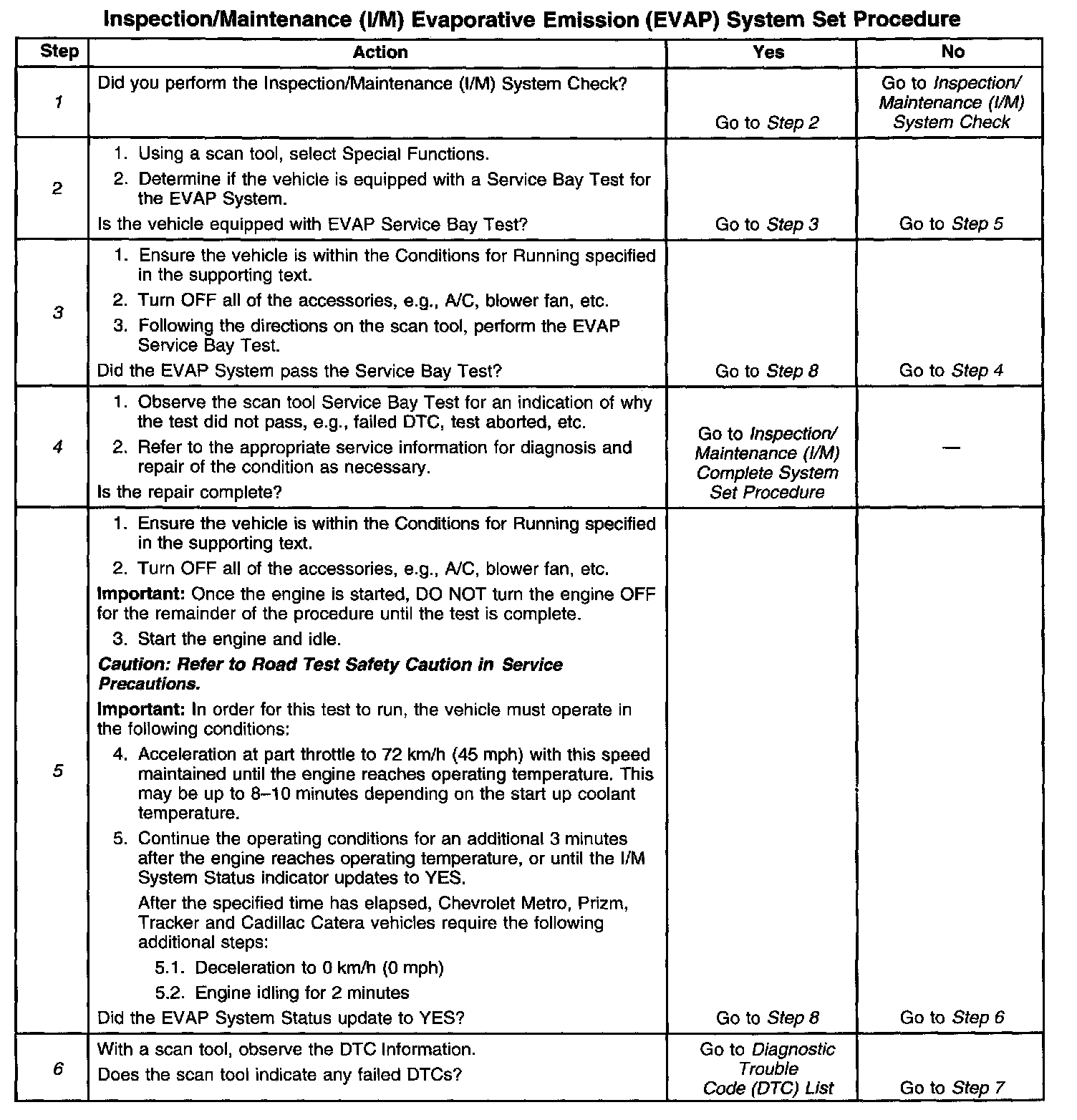1. Perform the I/M System Check before performing this test. Failure to do so may result in difficulty updating the status to YES. Inspection/Maintenance (I/M) System Check