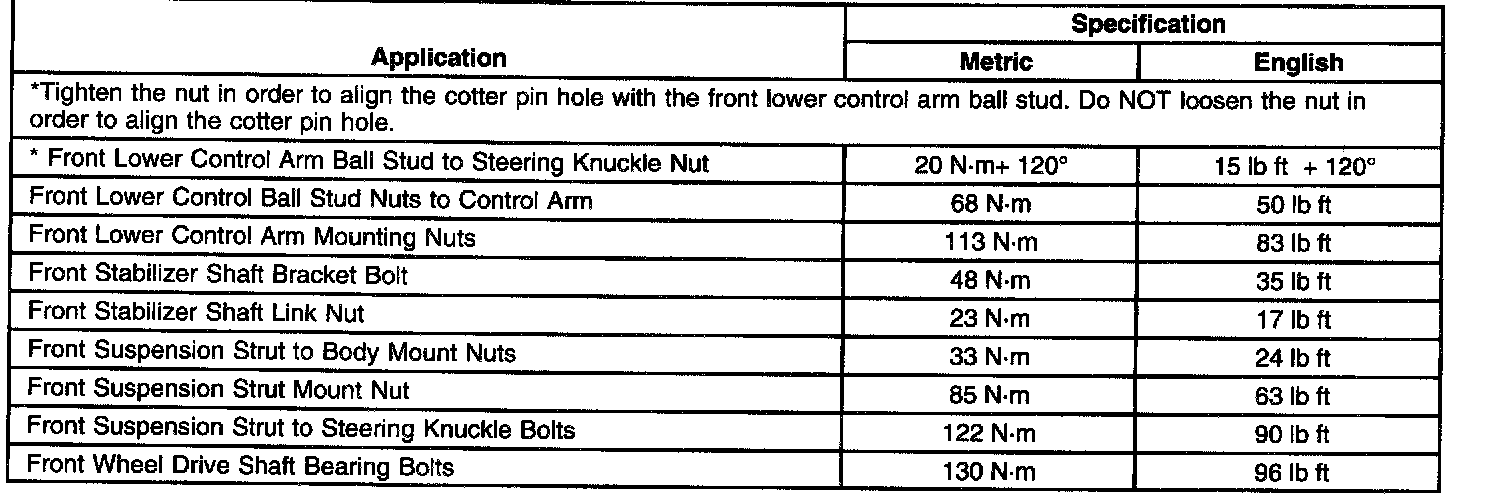 Fastener Tightening Specifications