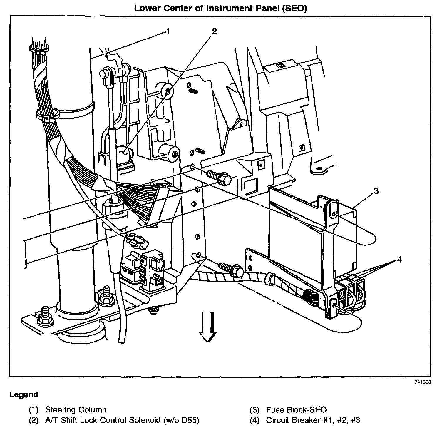 Behind the I/P, right of the steering column