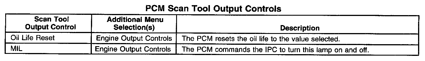 Scan Tool Output Controls - Powertrain Control Module (PCM)