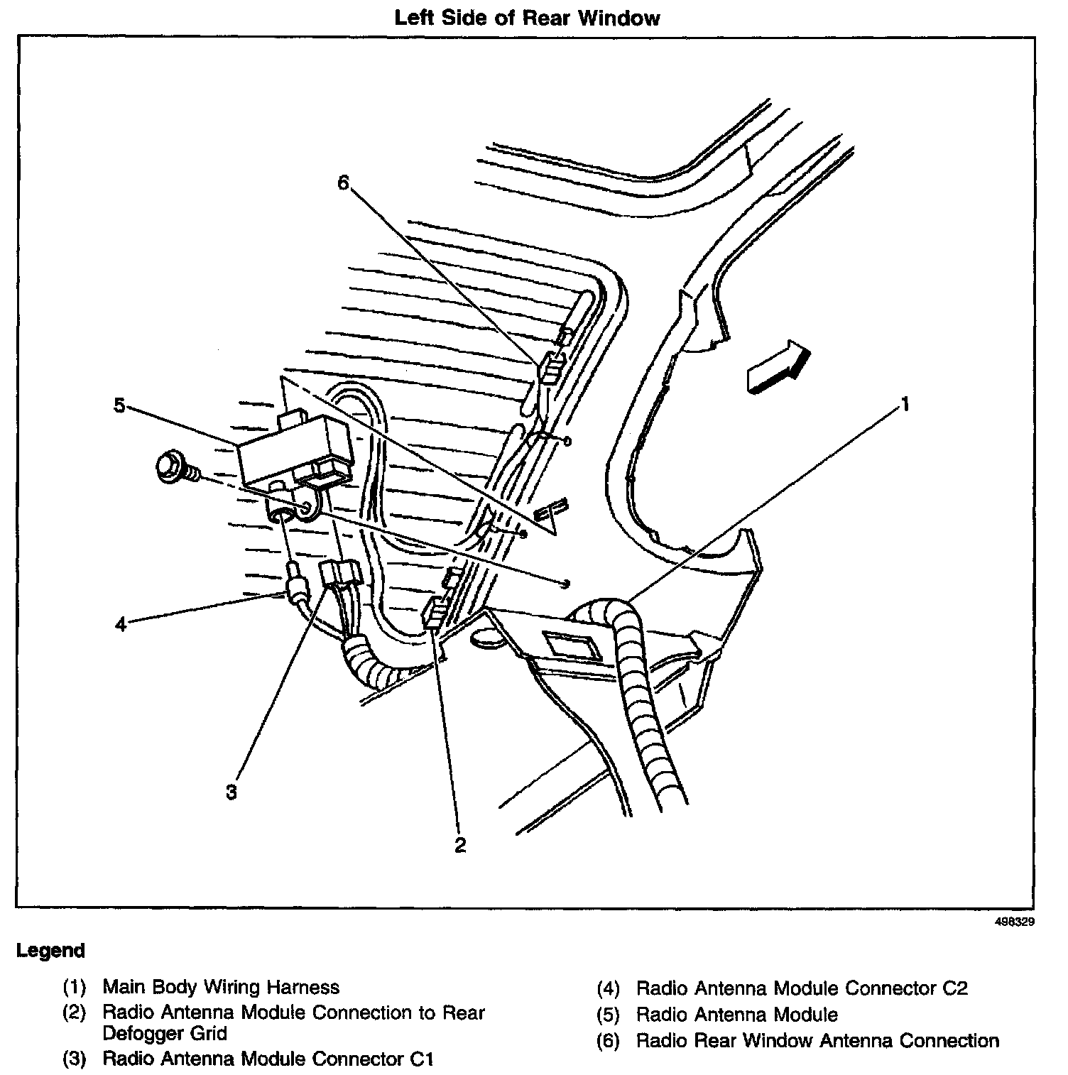 In the passenger compartment, left of the back window