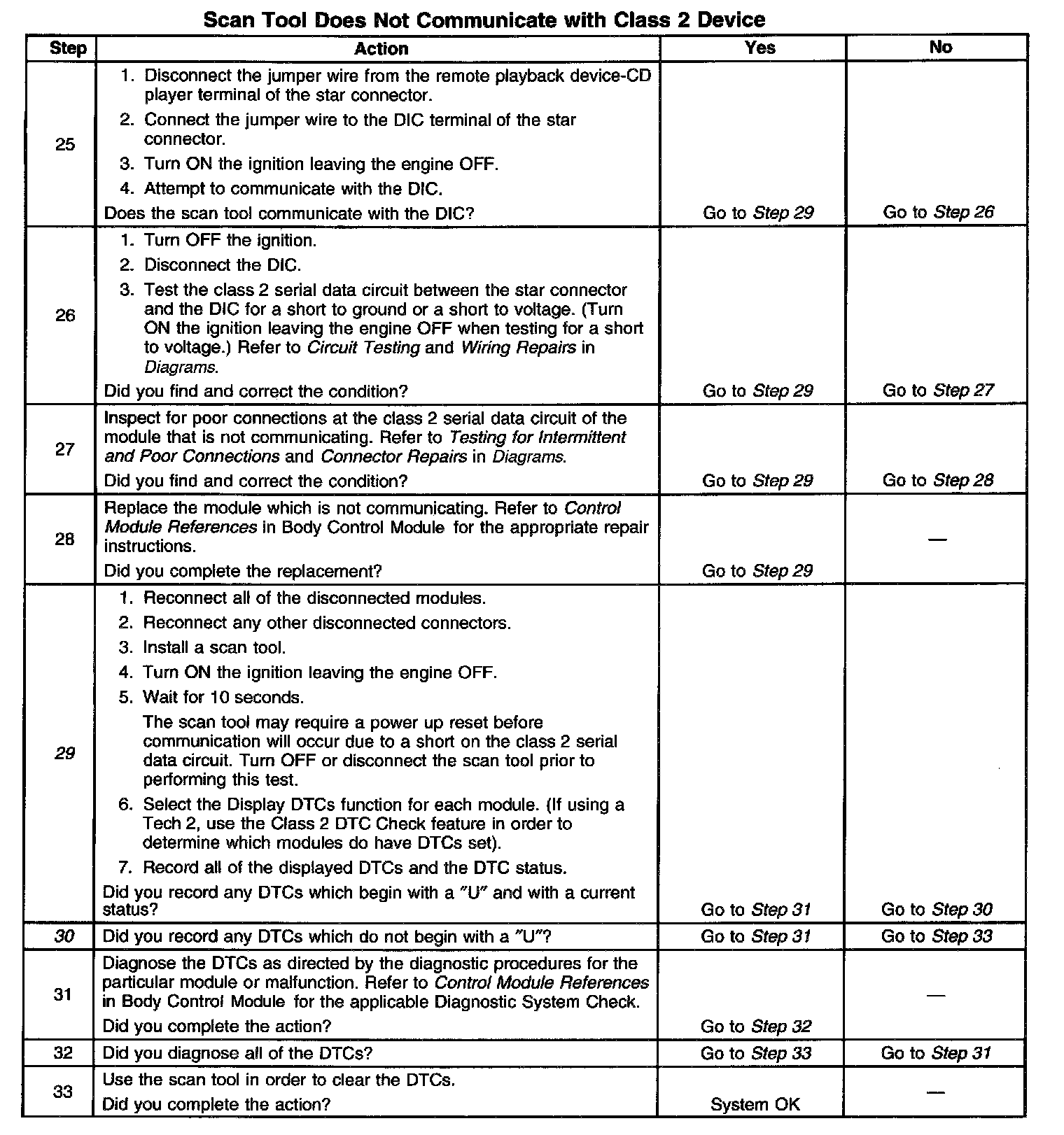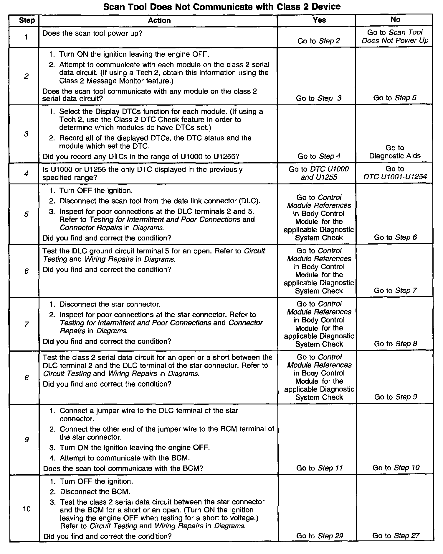 8. An open in the class 2 serial data circuit between the DLC and star connector will prevent the scan tool from communicating with the modules. This condition will not set a DTC.