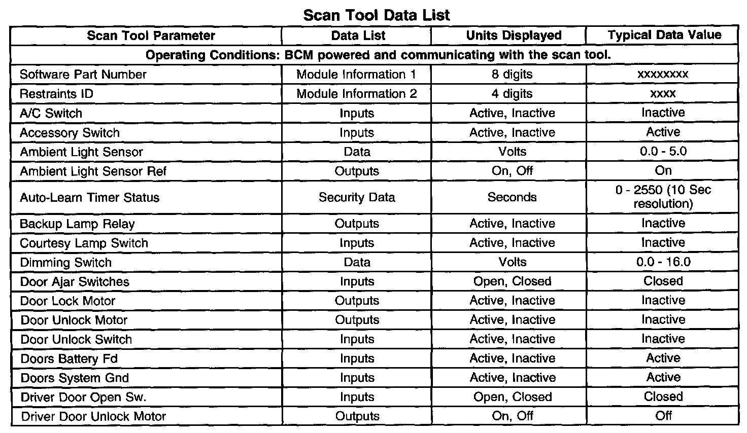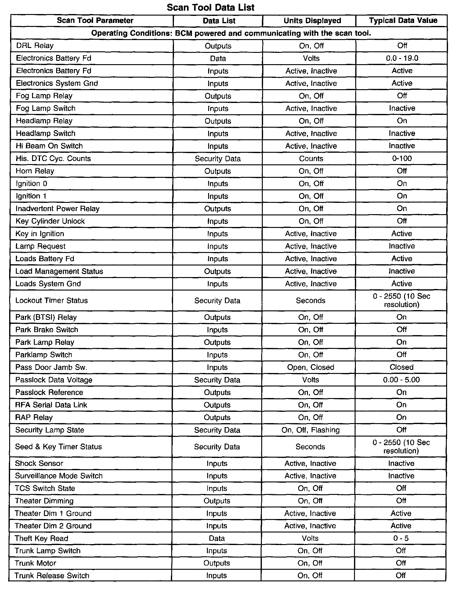 Scan Tool Data List