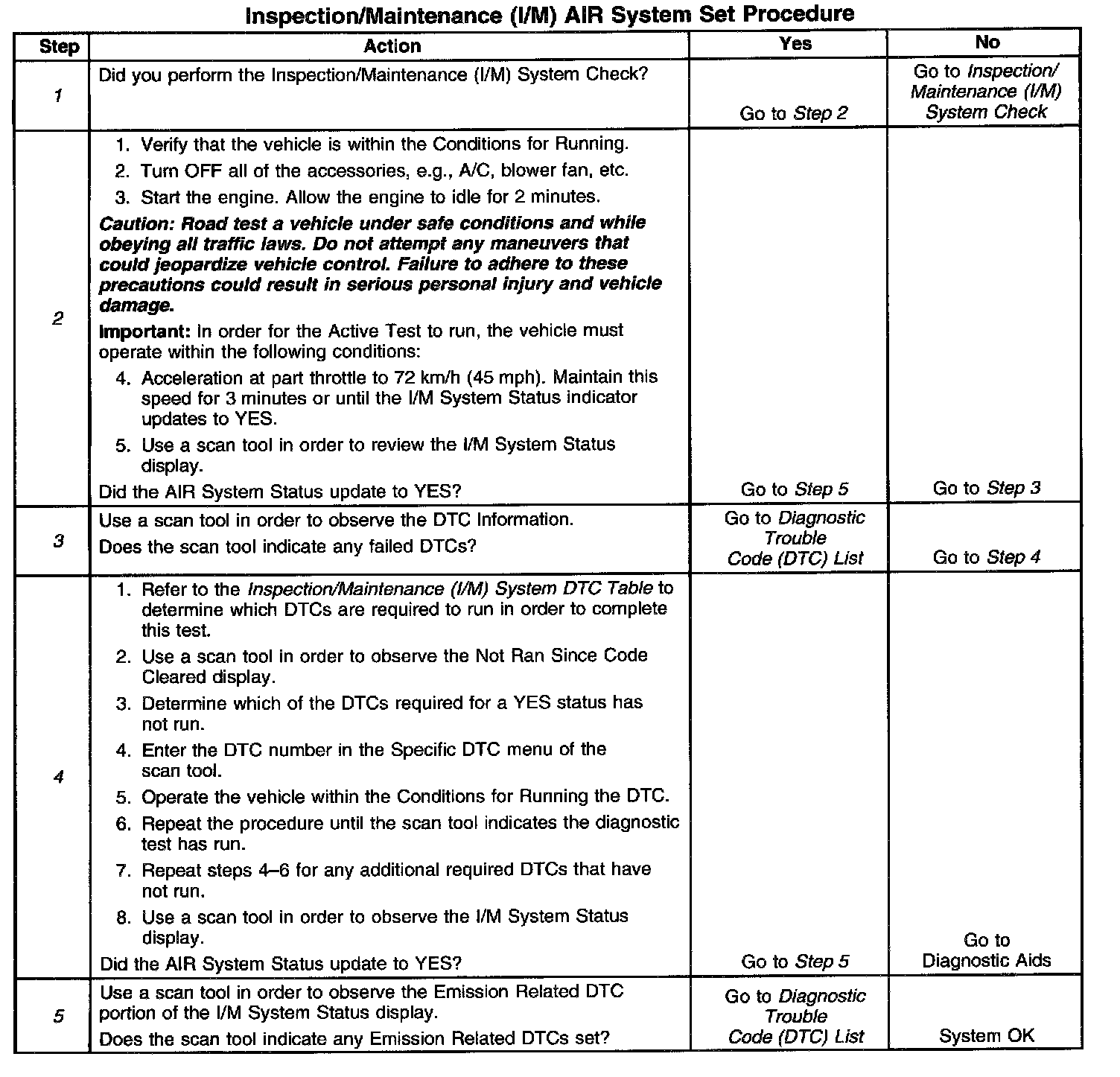 I/M AIR System Set Procedure