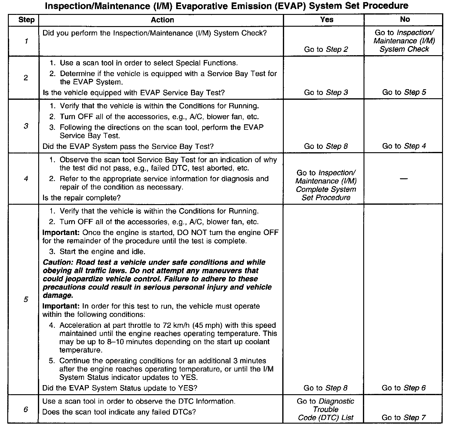 1. Perform the I/M System Check before performing this test. Failure to do so may result in difficulty updating the status to YES. Inspection/Maintenance (I/M) System Check