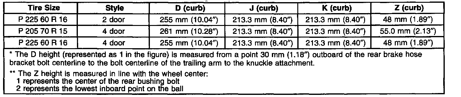 Ride/Trim Height Specifications